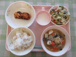 ソイ丼 かきたま汁 バリバリサラダ 牛乳