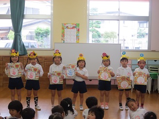 六月は梅雨といって、雨の日は室内遊びが多くなります。怪我、事故に充分注意して友達と仲良く過ごしましょう。誕生日おめでとうございます。