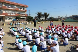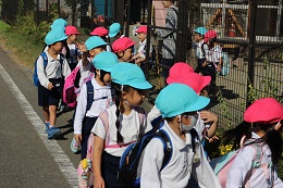 10月26日(水)は園外保育の日です。お弁当をもって、岡部小学校へ歩いていきました。予定より到着に時間がかかったりと迷惑もかけましたが、園児たちは楽しそうでした。1年前は園児だった子どもたちが、お兄さんお姉さんらしく、ゲームを説明し、手をつないで面倒をみてくれました。最後の園長の話では「ありがとう」そして「よろしくお願いします」ということについて、話しました。2時間目、3時間目とつかって迎えてくださった先生方や児童たちに感謝しています。小学校への階段、5歳児は少しずつ登り始めました。楽しみな気持ちがいっぱいになったことと思います。
