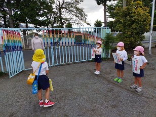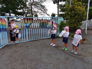 「まん延防止等重点措置」の延長を受け、例年実施しております保育参観の持ち方の変更にご理解いただき感謝いたします。22日に分散型保育参観の計画表を配布しました。第一希望を優先に計画表を作成しましたが、思い通りにならなかった保護者の皆様のご理解に感謝いたします。参加人数を踏まえ三密を考え計画表を作成したことにご理解下さい。参加に際しましては、配布しました健康確認票の提出をお願いいたします。