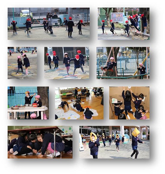 今日は、地震と火災の避難訓練を行いました。回数を重ねるごとに要領がよくなって「自分の命は自分で守る」という目的がわかるようになってきました。特に年長児は年中児のお手本になってきました!さすがです。