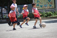 アタック、キックボールけらなければ得点できないぞ-・・・。お父さん方の協力もあり、今日はお父さん方の厳しい責めに苦戦しながらも、食らいついていました。安全・熱中症に気をつけて進めました。有り難うございます。