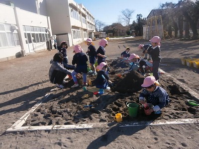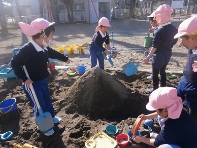 砂場に新しい砂が入りました。