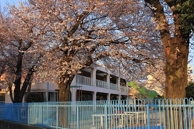 園庭を走り回る子どもたちも桜吹雪のように舞っていました。