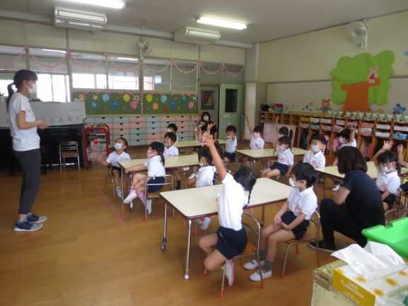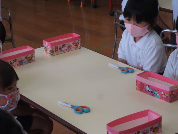 きりん組さんは、ハサミの安全な使い方を教えてもらいました。