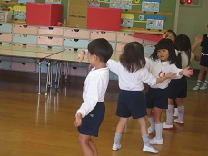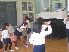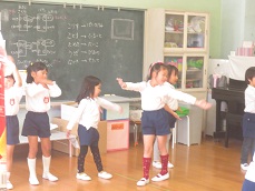 みんな踊るの大好き、歌うの大好き・・・。教室からピアノの音に合わせて、子供どもたちの歌声が聞こえます。先生との仲良し姿が想像できます。