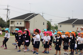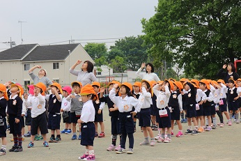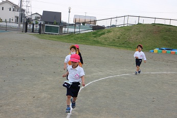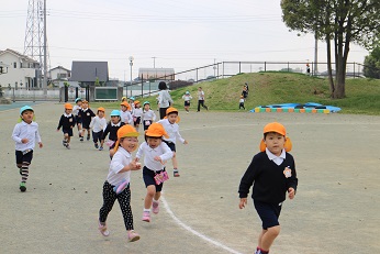 4月23日(月)は昨日の30度からぐっと気温が下がって、過ごしやすい陽気となりました。今日の体操マラソンに3歳児が初めて参加しました。何が何やら、と不思議そうな顔をしているお友達や、楽しい音楽に体を動かしているお友達、反応はいろいろでしたが。最後のマラソンまでがんばりました。新入の4歳児はもうすっかり体操マラソンにもなれ、元気に走ります。3歳児もだんだんと楽しめるようになると思います。