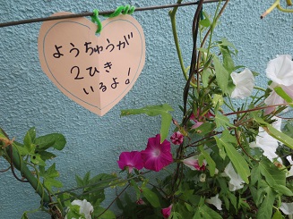 これも貴重な体験、どんな美しい蝶になるかなぁ・・・。園児達と見守ります。