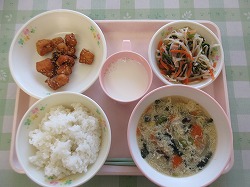 ソイ丼 かきたま汁 バリバリサラダ 牛乳