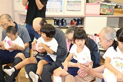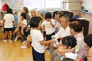 おじいちゃん、おばあちゃんとの交流、ゲームです。おじいちゃん、おばあちゃんもみんな笑顔が溢れています。園児たちは、この姿が見たかったのでしょう。