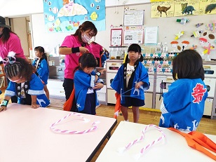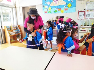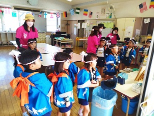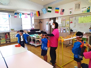 「まん延防止等重点措置」の延長を受け、例年実施しております保育参観の持ち方の変更にご理解いただき感謝いたします。22日に分散型保育参観の計画表を配布しました。第一希望を優先に計画表を作成しましたが、思い通りにならなかった保護者の皆様のご理解に感謝いたします。参加人数を踏まえ三密を考え計画表を作成したことにご理解下さい。参加に際しましては、配布しました健康確認票の提出をお願いいたします。