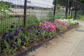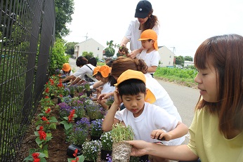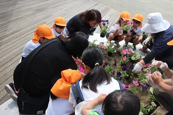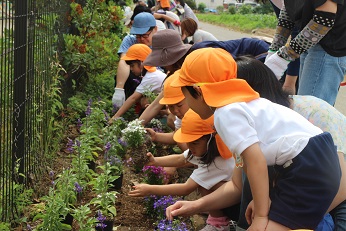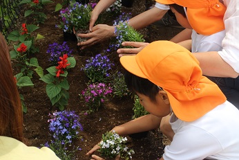 5月31日(金)は、令和元年度春の花はなプランを実施しました。緑の王国で育ててくださり、いただいた花の苗を年長さんとその保護者の方で植えました。昨日まで、きれいに咲いていたパンジーもきれいでしたが、すっと涼やかな色合いの花壇になりました。一生懸命植えた花の苗、これから来る梅雨の恵みを受けて、ずっと私たちの目をなごませてくれるといいなと思います。