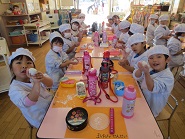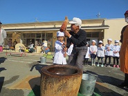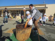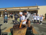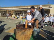 12日(木)に今年度のもちつき会が行われました。今年は、園児の数が減少し、PTAの役員さんの数も減ったので実施できるか心配していましたが、PTAの役員のお母さんたち、そして、もちつきに駆けつけてくれた何人かのお父さんたち、更に地域の方たちの協力で今年も園児たちが楽しむことができました。ご協力ありがとうございました。