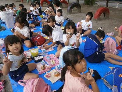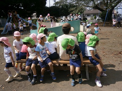 朝からとてもさわやかな1日でした。天候もよく、今日は、散歩に出かけました。年長と年中で手をつなぎ、交通ルールを守ってやよい公園まで行ってきました。