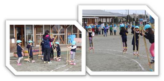 ※写真は今日のクリスマス会の準備と竹馬遊び等の様子です。