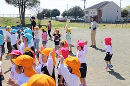 4月19日(水)、3歳児も体操マラソンに参加しました。みんなで楽しく体操をしたあと、園庭を走ります。4歳児は2日目にして、音楽に合わせて楽しそうに体を動かすことができていました。3歳児は、なあに?という顔つきながらも、少しずつ踊る園児やすっかり楽しそうにステップを踏んでいる園児がいました。みんなで楽しく体つくり、がんばりたいと思います。