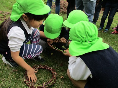 さくら組は、リース作りにも挑戦しました。手伝ってもらいながらも、年中さんの分まで作ってくれました。