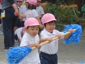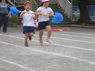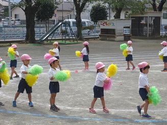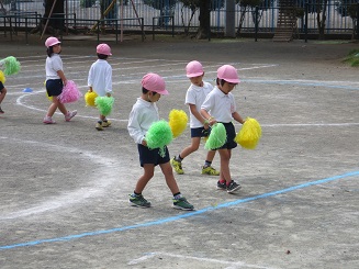さくら組さん「リレー」「よさこい雷神ソーラン風神」の練習を一回ずつやりました。