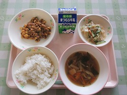 ソイ丼 かきたま汁 バリバリサラダ 牛乳
