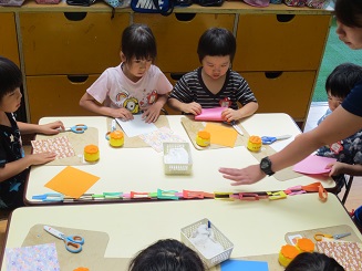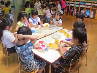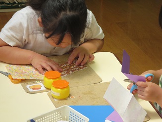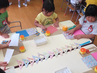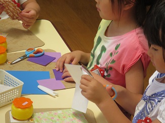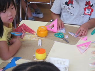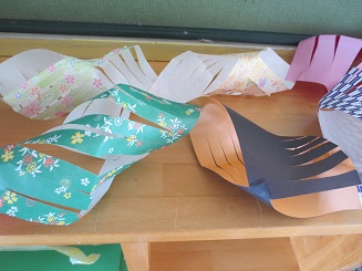 失敗しても自分の作品ですが、切りすぎると作れない子もいます。けれど、友達同士で教え合いながら制作していました。友達は有り難いですね。みんなの願い事、何でしょうか。明日は願い事の短冊を作ります。