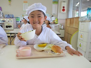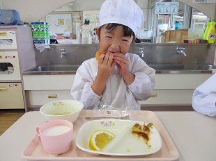 毎日おいしい給食が食べられて、幸せです(⋈◍>◡<◍)。✧♡