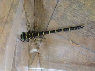 みんな、その大きさに羽の動きにみんなびっくりです。また、歌にもあるように(トンボのメガネは水色メガネ、青いお空を飛んだから・・・。)ちょっと毒々しい緑色ではありますがメガネのようにはっきりとしています。