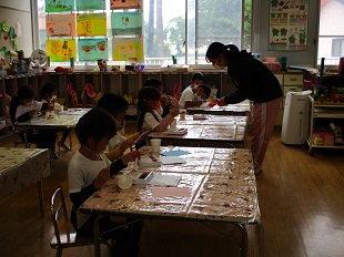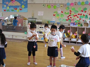 「まん延防止等重点措置」の延長を受け、例年実施しております保育参観の持ち方の変更にご理解いただき感謝いたします。22日に分散型保育参観の計画表を配布しました。第一希望を優先に計画表を作成しましたが、思い通りにならなかった保護者の皆様のご理解に感謝いたします。参加人数を踏まえ三密を考え計画表を作成したことにご理解下さい。参加に際しましては、配布しました健康確認票の提出をお願いいたします。