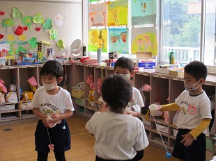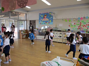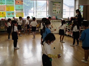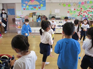 リズム室でしっぽ取りゲームとハンカチ落としをしました。