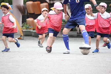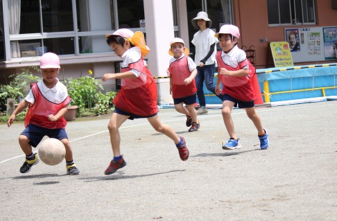 攻める子、守る子、友達と競い合う子、ボールい続ける子、悔しがる子、遠慮がちな子、シュートで喜ぶ笑顔、勝ってうれしがり負けて悔しがる姿がありました・・・。作戦などありません。パスももちろんありません。ボールを追い続ける中に、みんなチームの仲間意識や競い合う、自分の動きが自然と毎回芽生えているようです。まだまだそれぞれにそれぞれの可能性を秘めて・・・。頑張ったね。保護者の皆様ご協力有り難うございました。