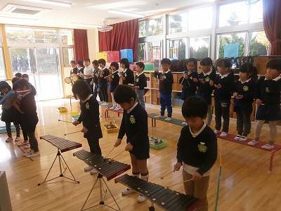 さくら組も4時間目を使わせてもらい、体育館で練習しました。発表会の流れもわかるようになり、進行も早くなってきました。今後は、縄跳び、組体操の完成度をあげていったり、合奏で気持ちを合わせて演奏したりできるように練習していきたいと思っています。