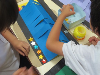 黒枠にキラキラき星を張り付けています。