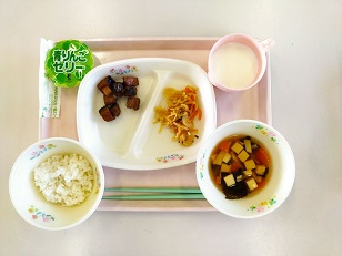 ソイ丼 かきたま汁 バリバリサラダ 牛乳