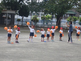 きりん組さんが運 動会のダンスの位置確認のため練習しました。