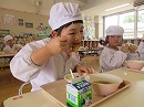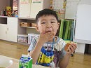 年長さんはもずくスープやチキンをおかわりをする姿がありました