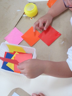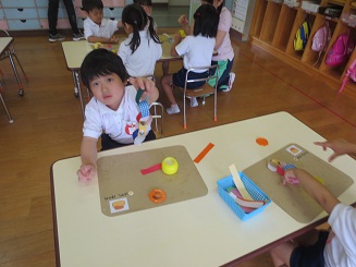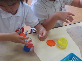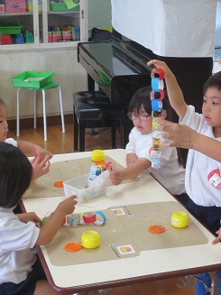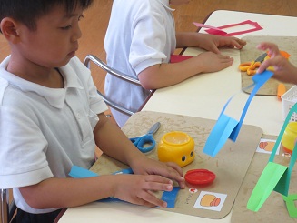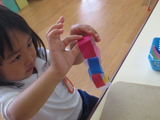 その子なりに自分の好きな色や輪のつなげ方をきちんと考えていました。真剣そのもの