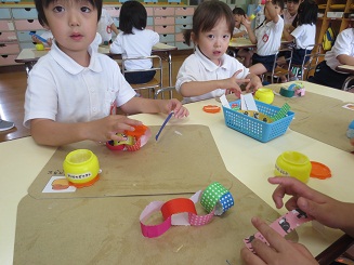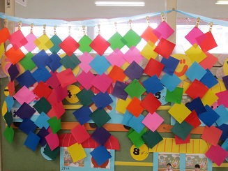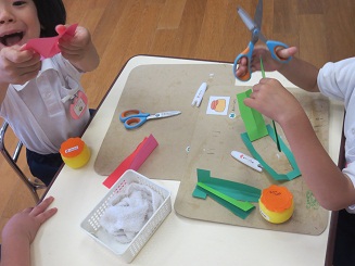 綺麗な飾りを作る中に、自分の願い込め友達と会話をしたりして楽しんでいました。