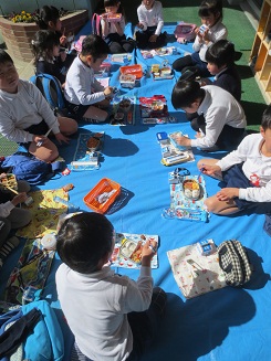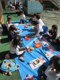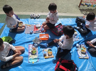 こんな日のお弁当は気持ちよく、外で楽しく食べました。