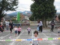 運動会ごっこをしたり、お砂場で遊んだりしました。4歳児の運動会で行った