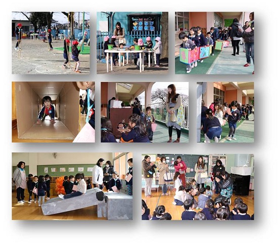 今日は本園を会場とする「子育てひろば」の最終日でした。可愛いお友だちを迎え、ちょっぴりお姉さんお兄さん気分を味わいました。来園した可愛いお友だちと一緒に外遊びをしたり、年長さんが作った大型動物で遊んだりしました。