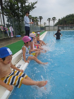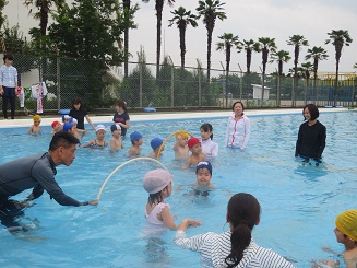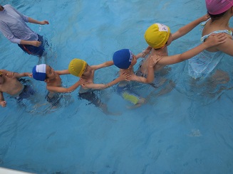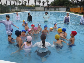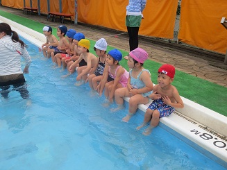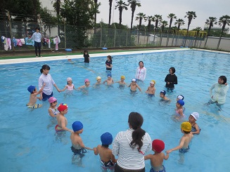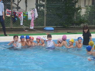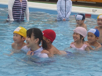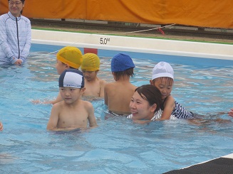 天気が回復して機会があればもっともっと楽しみましょう。安全に気をつけるため、お母さん先生もたくさんプールに入り見守ってくれました。有り難うございました。