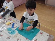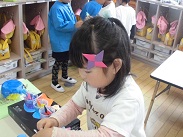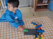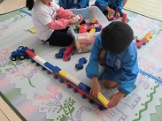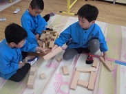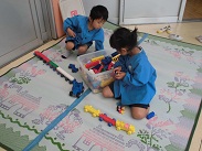 朝から強い雨が降っていました。今日は、園児たちも室内での活動・遊びになりました。遊びもいろいろ工夫されてきましたが、ブロック遊び、粘土、折り紙などが好きなようです。