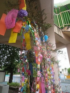 短冊の色とりどりの願いが、叶いが星のようにピカッと輝くようにお祈りしています。