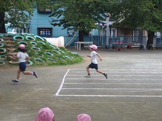 速くなりたい人は、友達が走っているときに、下を向いて絵を描いていてはだめですよ。応援したりどんな走り方なのか見てください。