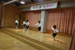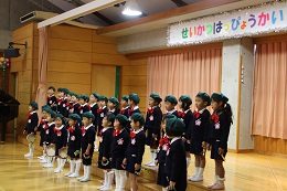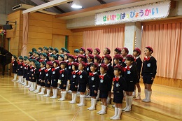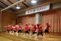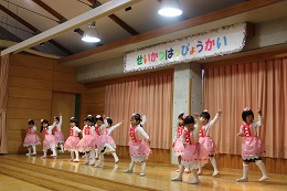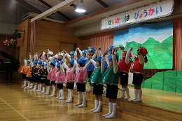 12月9日(金)は平成28年度生活発表会でした。全員の園児の出席のもと、暖かな日差しに守られて、行うことができました。先生たちと毎日毎日練習を重ねてきた成果を十分に発揮できた発表会になったと思います。初めての楽器に戸惑っていたり、音楽に合わせて踊る練習を始めたばかりのころを思うと4歳児(りす組)さんは素晴らしい成長ぶりを見せてくれました。また、いつも誰かが声をかけたりして、時間があれば自分たちで練習していた5歳児(しか組)は日に日に上達して立派な発表を見せてくれました。保護者やご家族の方々に見守られ、園児たちもうれしそうな満面の笑顔でした。