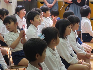 皆さんの拍手から、幼稚園のよりよい運営に、みんなで協力・団結の力強さ感じ取りました。職員一同この子どもたちとの偶然の出会いとはいえ、よき出会とするために精一杯頑張るファイトが湧いてきました。