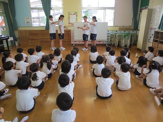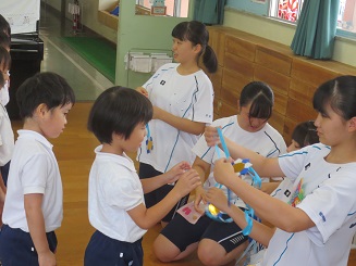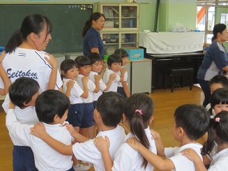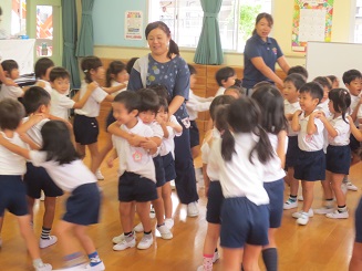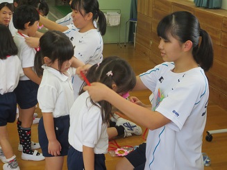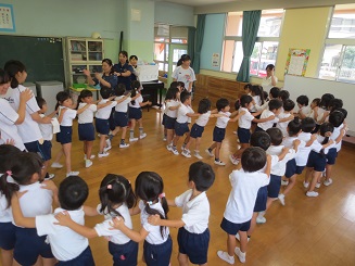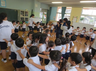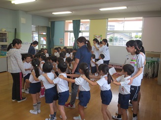 体験実習の高校生とお別れの遊びをしました。「じゃんけん列車」です。