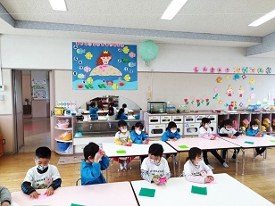 「まん延防止等重点措置」の延長を受け、例年実施しております保育参観の持ち方の変更にご理解いただき感謝いたします。22日に分散型保育参観の計画表を配布しました。第一希望を優先に計画表を作成しましたが、思い通りにならなかった保護者の皆様のご理解に感謝いたします。参加人数を踏まえ三密を考え計画表を作成したことにご理解下さい。参加に際しましては、配布しました健康確認票の提出をお願いいたします。