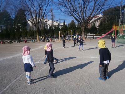 午前中は暑いくらいの日差しで、子どもたちは、戸外遊びを十分に楽しみました。