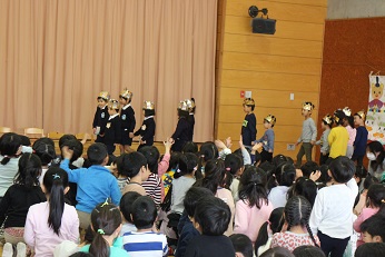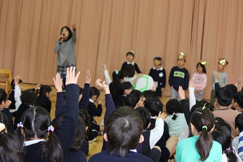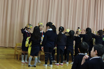 2月26日(火)は穏やかな一日です。春が一歩一歩近づいているのを感じます。幼稚園のフェンスわきにホトケノザが花を咲かせ、チューリップも芽を出しています。そんなワクワクする季節に生まれたお友達の誕生会を開き、みんなでお祝いしました。年少さんには2月生まれはいませんでしたが、年中さん3名、年長さんが3名、お誕生月でした。将来の夢を質問されたお友達は、しか組さんからはクッキー屋さん、アイス屋さん、プリキュア、警察官、きりん組さんからは、サッカー選手、美容師さん、一人一人自分の考えをしっかりと発表しました。先生たちからのプレゼントは、「推理ゲーム」です。お誕生月を迎えたお友達が出してくれるヒントをもとに、隠れているものを探します。楽しい誕生会となりました。