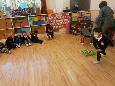 うさぎ組は、運動能力測定に向け、ジャンプや投げる練習をしました。新聞で作ったボールを、勢いよく、飛ばす姿が見られました。